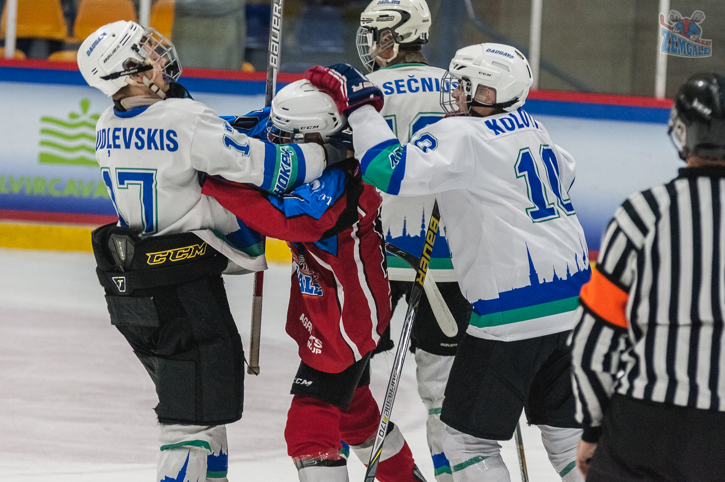 Pēdējā mēneša spēlē, 29. novembrī, izbraukumā Liepājā, “JLSS U17” tikās ar vieniem no saviem tuvākiem konkurentiem LBJČH turnīra tabulā – “LSSS”. Spēle norisinājās ļoti spraigi. Pirmā trešdaļa noslēdzās ar neizšķirtu rezultātu, komandām gūstot pa vieniem vārtiem. Otrajā trešdaļā liepājnieki izvirzījās vadībā ar diviem gūtiem vārtiem, uz ko “JLSS U17” spēja atbildēt ar vieniem. Trešās trešdaļas sākumā mūsu puiši izlīdzināja rezultātu, bet ceturtā trešdaļas minūtē komanda zaudēja koncentrāciju un “LSSS” hokejisti trīs minūšu laikā guva trīs ripas. “JLSS U17” jaunieši bija spiesti sākt atspēlēties. Divus vārtus atgūt izdevās, bet pēdējā minūtē, kad vārtsargs tika nomainīts pret sesto laukuma spēlētāju, “LSSS” ieraidīja ripu tukšos vārtos un atņēma jelgavniekiem svarīgus trīs punktus – 5:7 (1:1; 1:2; 3:4). Divus vārtus šajā spēlē guva Artūrs Karaša, bet pa vieniem guva – Ričards Briņecs, Klāvs Veinbergs un Vitālijs Čerkass.