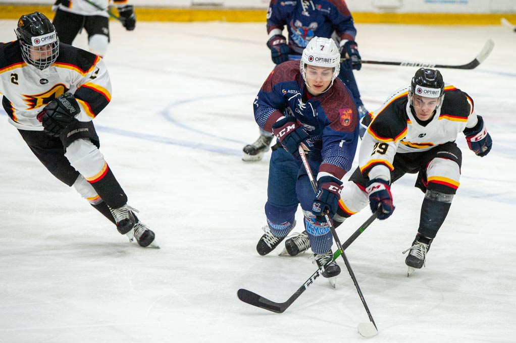 Trīs minūtes vēlāk aizsargs Renārs Džerods Alksnis, izmantoja pretinieka aizkavēšanos spēlētāju maiņa, pats pietuvojās vārtiem un ieraidīja ripu vārtos – 2:0.