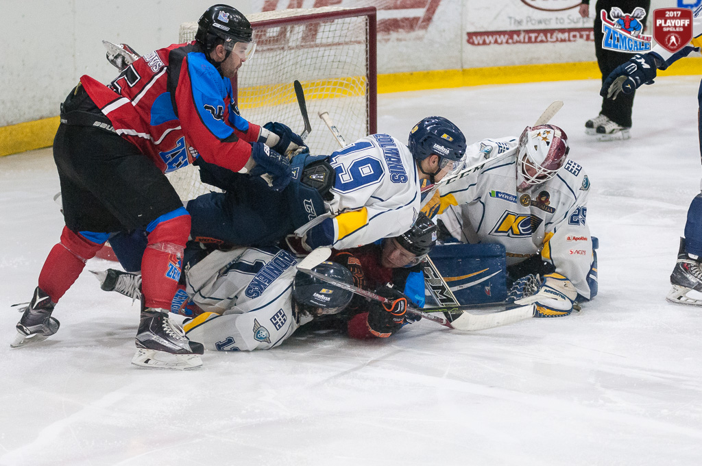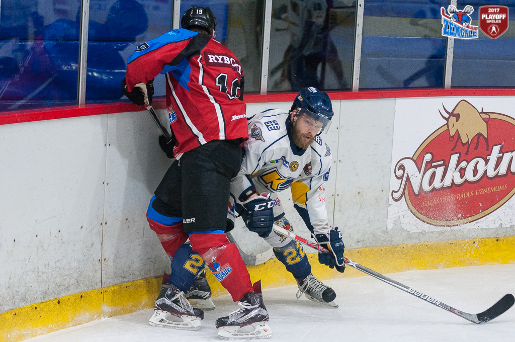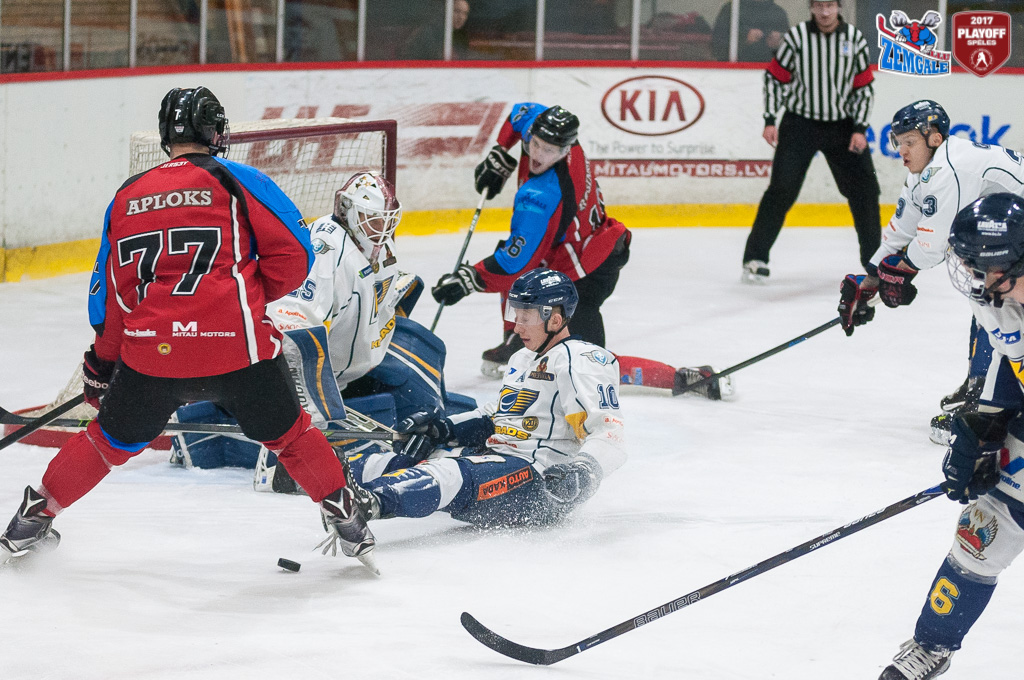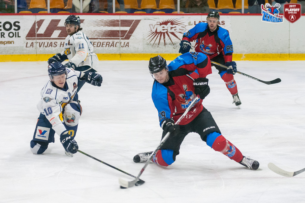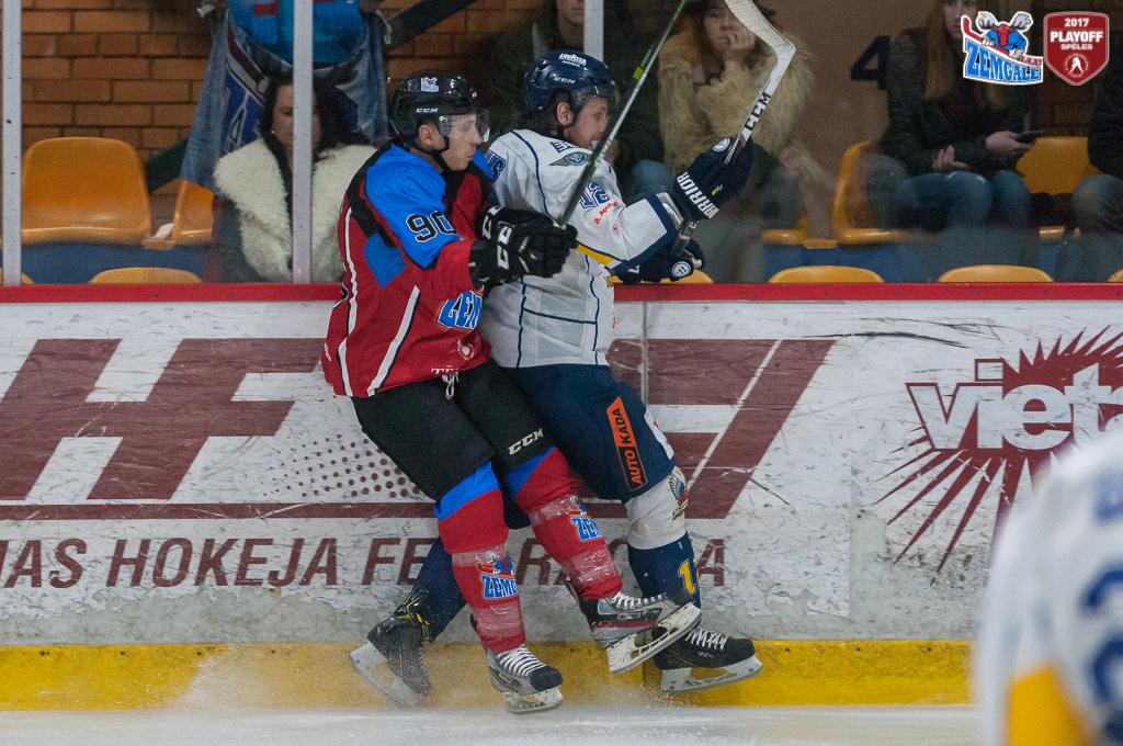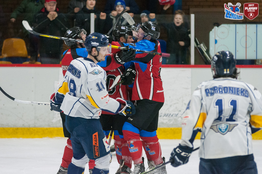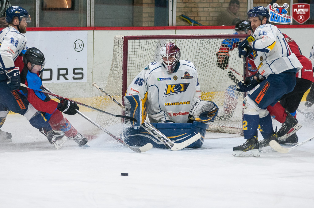 Latvijas hokeja Virslīgas ceturtā pusfināla izslēgšanas sērijas spēlē dramatiskā cīņā HK “Zemgale/LLU” izcīna uzvaru pret HK “Kurbads” ar rezultātu 4:3 (2:0; 1:1; 1:2). Jelgavnieki ātri izvirzījās vadība, bet tad ogrēnieši izlīdzināja spēles rezultātu. Sasparojušies HK “Zemgale/LLU” spēlētāji tomēr spēja gūt uzvaras vārtus trešā trešdaļā un izlīdzināja sērijas rezultātu – 2:2.
