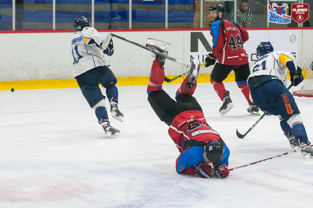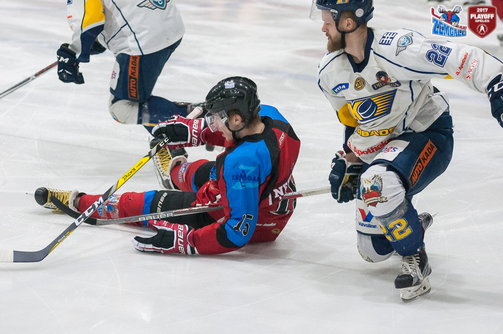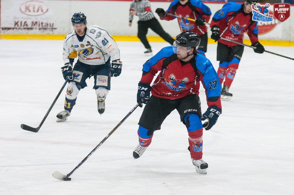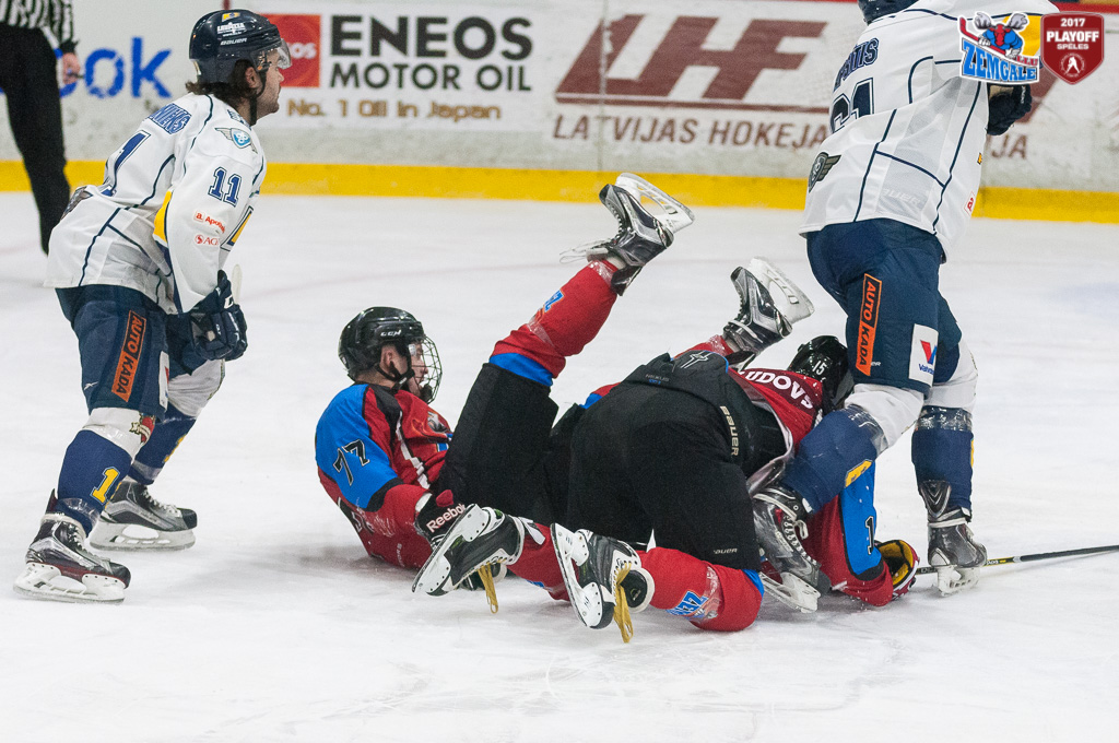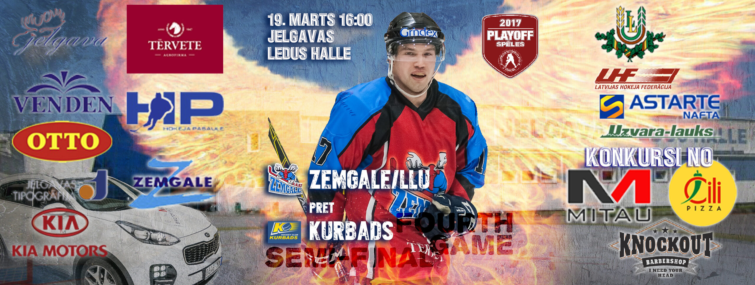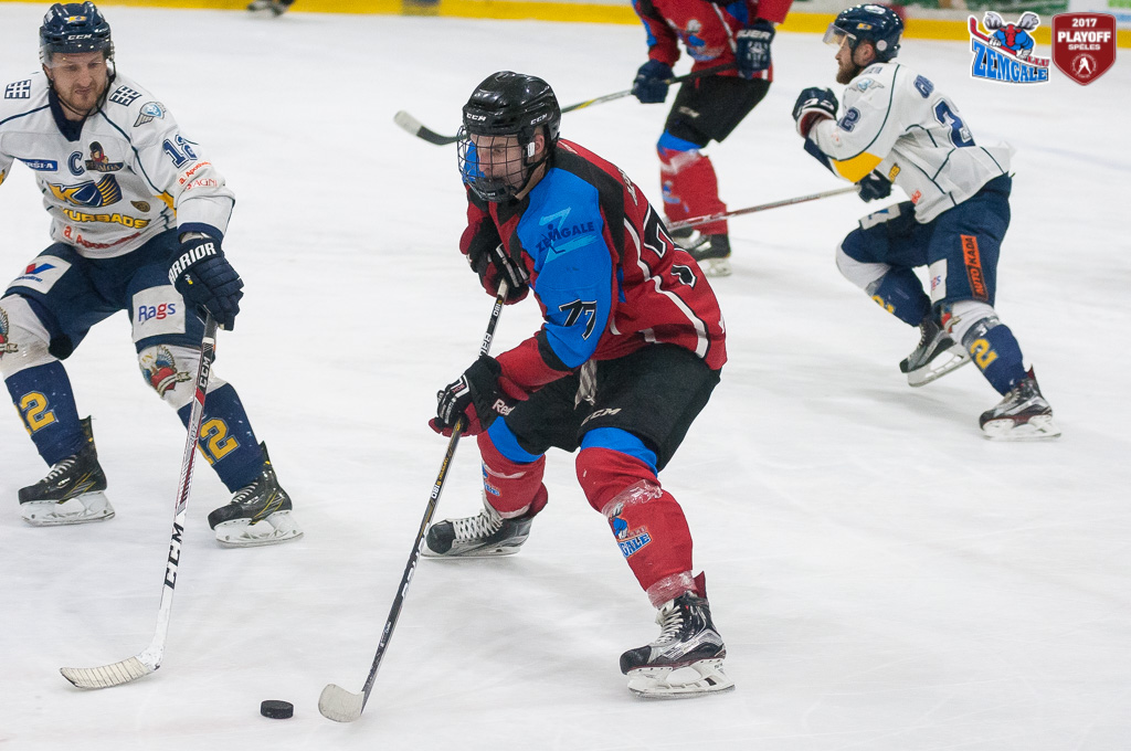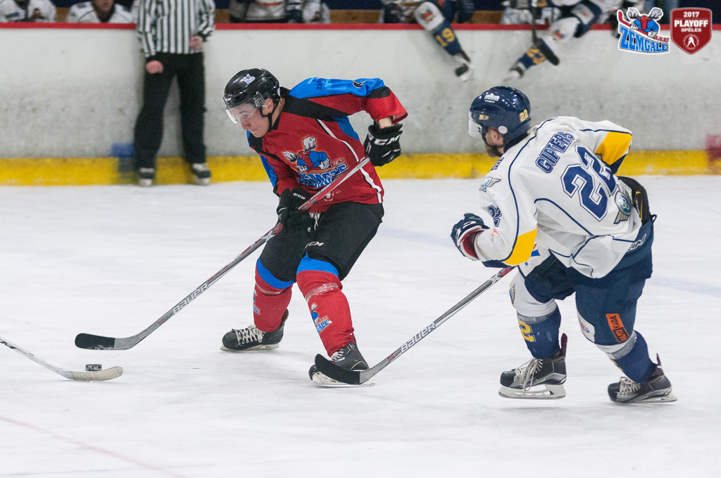 Latvijas hokeja Virslīgas ceturtā pusfināla izslēgšanas sērijas spēlē dramatiskā cīņā HK “Zemgale/LLU” izcīna uzvaru pret HK “Kurbads” ar rezultātu 4:3 (2:0; 1:1; 1:2). Jelgavnieki ātri izvirzījās vadība, bet tad ogrēnieši izlīdzināja spēles rezultātu. Sasparojušies HK “Zemgale/LLU” spēlētāji tomēr spēja gūt uzvaras vārtus trešā trešdaļā un izlīdzināja sērijas rezultātu – 2:2.