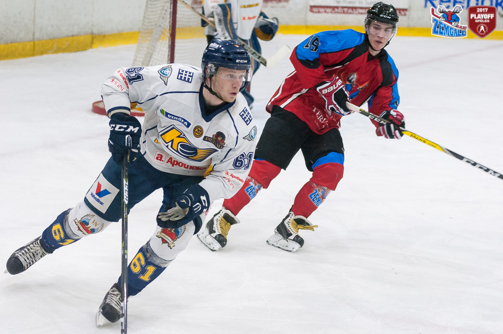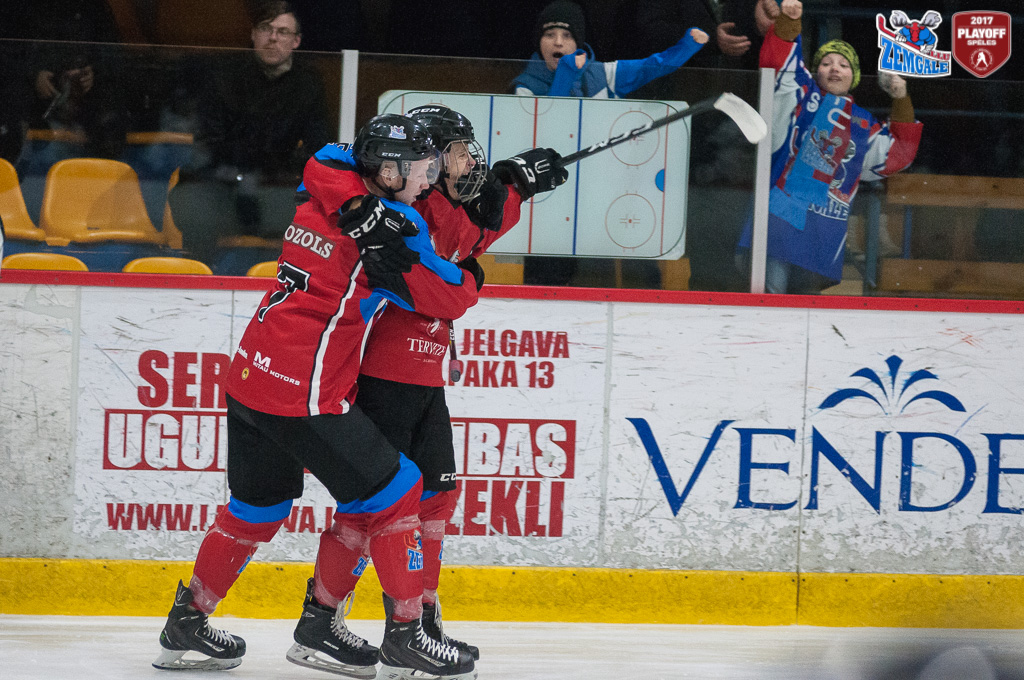 HK “Zemgale/LLU” diennakts laikā apzinājušies iepriekšējās dienas zaudējuma postu un uzsāka pārliecinoši uzsāka pirmo trešdaļu. Jau ceturtā minūtē pēc Niklāva Birova un Olafa Aploka piespēlēm vārtus gūst Romāns Ņekļudovs – 1:0. HK “Kurbads” nebija nemaz tik nevarīgs, jo atbildēja uz jelgavnieku pārliecību ar ātriem pretuzbrukumiem, bet vārtos stabilu sniegumu rādīja vārtsargs Reinis Petkus. Abām komandām trešdaļas gaitā neizdevās izmantot skaitliskā pārsvara priekšrocības. Bet trešdaļas sešpadsmitā minūtē pēc Raivja Kurnigina piespēles vārtus guva Kristaps Legzdiņš un nostiprināja jelgavnieku pārliecību savos spēkos – 2:0.