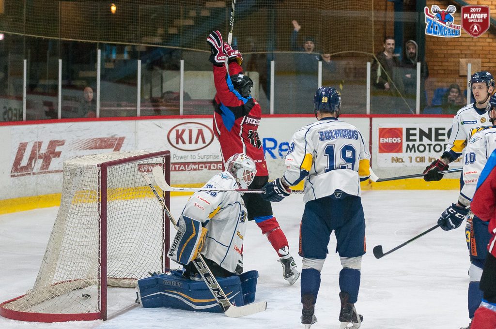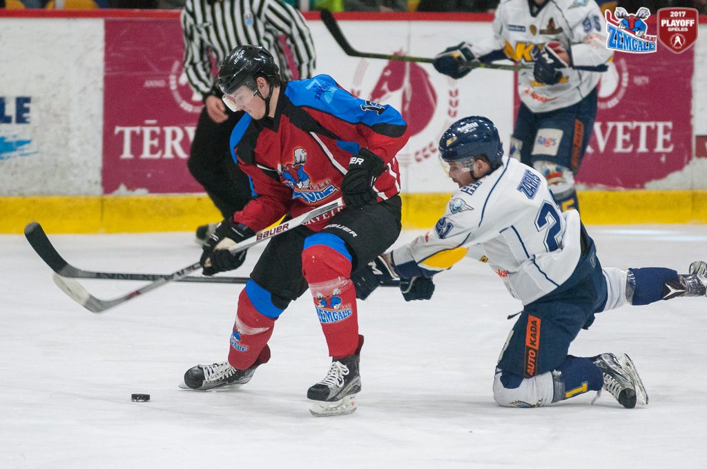Latvijas hokeja Virslīgas ceturtā pusfināla izslēgšanas sērijas spēlē dramatiskā cīņā HK “Zemgale/LLU” izcīna uzvaru pret HK “Kurbads” ar rezultātu 4:3 (2:0; 1:1; 1:2). Jelgavnieki ātri izvirzījās vadība, bet tad ogrēnieši izlīdzināja spēles rezultātu. Sasparojušies HK “Zemgale/LLU” spēlētāji tomēr spēja gūt uzvaras vārtus trešā trešdaļā un izlīdzināja sērijas rezultātu – 2:2.