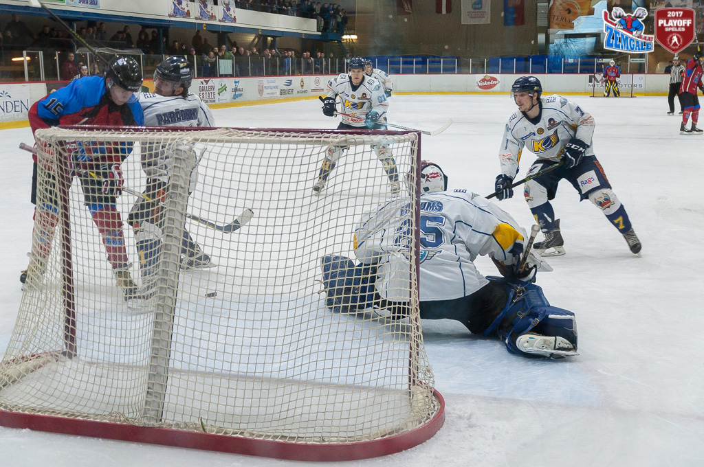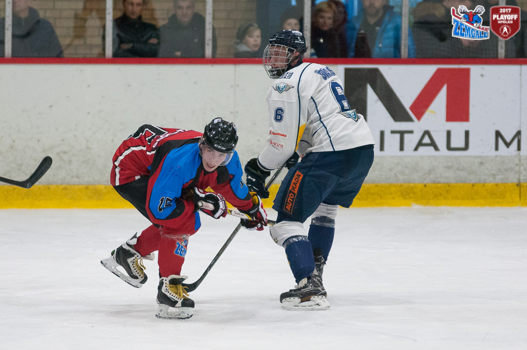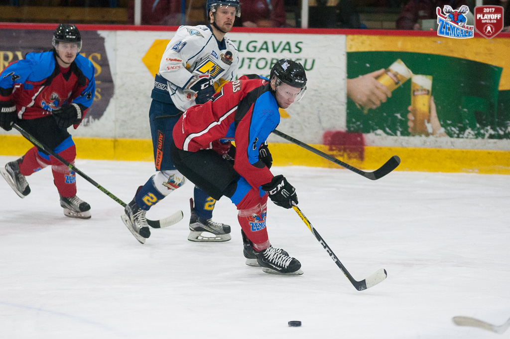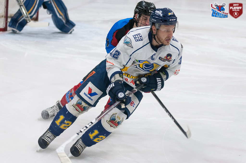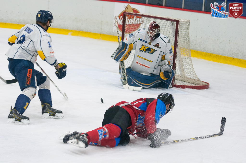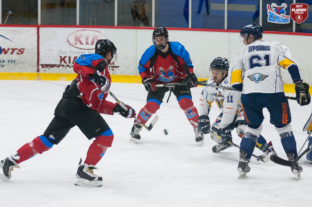 Latvijas hokeja Virslīgas pusfināla izslēgšanas sērija trešā spēlē savās mājās HK “Zemgale/LLU” tikās ar HK “Kurbads”. Jelgavnieku pārsteidzoši neagresīva spēle ļāva viesiem gūt četrus vārtus un zaudēt tikai vienu – 1:4 (0:2; 0:2; 1:0). Sērijas vadību atkārtoti iegūst HK “Kurbads” spēlētāji, kuri svētdienas ceturtā spēlē būs vienā solī no nokļūšanas finālā – 2:1. HK “Zemgale/LLU” spēlētājiem arī būs pietiekama motivācija cīņai līdz pēdējam.