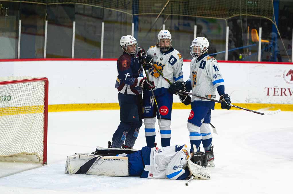 Trešdaļas izskaņā vārtu priekšā aizsarga Mārtiņa Poreja raidītās ripas lidojuma trajektoriju izmainīja “Zemgale Juniors” uzbrucējs Uldis Pūpols – 4:0. Jaunam hokejistam šie jau ir otrie gūtie vārti šajā sezonā.