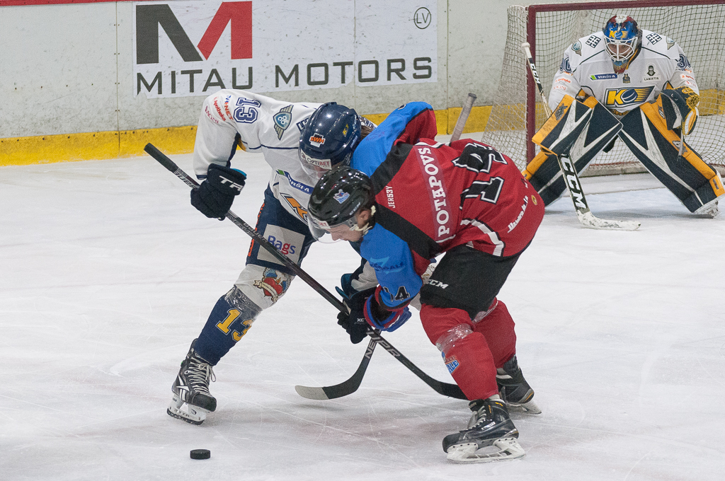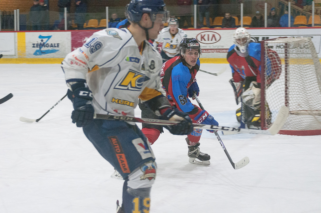 Pirmo trešdaļu aktīvie iesāka “Kurbads” spēlētāji, liekot jelgavniekiem vairāk aizstāvieties savā aizsardzības zonā. Tomēr viesu spiediens nebija tik liels, lai “Zemgale/LLU” nespētu atbildēt ar asiem pretuzbrukumiem. Trešajā minūtē laukuma saimnieki nopelnīja noraidījumu, bet izturēja to bez zaudētiem vārtiem. Spēles vidus daļā ripas kontrole izlīdzinājās un “Zemgale/LLU” spēlētāji izveidoja vairākus bīstamus uzbrukumus. Diemžēl sešpadsmitā minūtē tika nopelnīts vēl viens noraidījumus un to spēja realizēt viesu uzbrucējs Deivdis Sarkanis – 0:1. Trešdaļas noslēgumā bez viena laukuma spēlētāja palika “Kurbads”, kurš tā pirmo minūti spēja izturēt bez zaudētiem vārtiem.