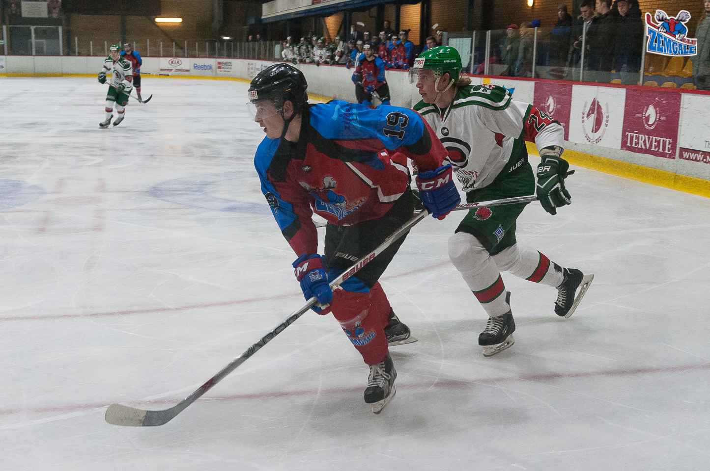 Pirmās trešdaļas sākumā “Liepāja/Optibet” spēlētāji lēnām pārņēma kontroli par ripu, bet jelgavnieki daudz ko ir mācījušies no iepriekšējām spēlēm un īsti nelaida viesus klāt saviem vārtiem. Komandas ļoti bieži iestrēga laukuma centrā, kur tos sagaidīja pretinieks un apturēja uzbrukumu veidošanos. Trešdaļas piektā minūtē “Zemgale/LLU” spēlētāji pieļāva jau pierasto kļūdu spēlē ar liepājniekiem. Pieciniek par dziļu ieslidoja pretinieka zonā, atspēlēja ripu aizsargam un kurš to zaudēja, ļaujot liepājniekiem doties ātrā pretuzbrukumā un Danielam Bogdzjulam #17 atklāt spēles rezultātu – 0:1. Tomēr “Liepāja/Optibet” pievīla spēles disciplīna un nopelnītais noraidījums, kuru devītā minūtē pēc Artjoma Ogorodņikova #17 un Andreja Kostjuka #7 piespēlēm realizēja Ričards Bernhards #15 – 1:1. Viesi līdz trešdaļas beigām nopelnīja vēl divus noraidījumus un līdz ar to nebija īpaši spējīgi mainīt spēles rezultātu, bet arī jelgavnieki to neizmantoja.
