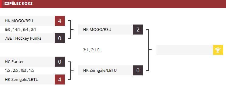 Papildlaikā “Zemgale/LBTU” pārsvars ripas kontrolē radīja vairākus bīstamus momentus, taču tie netika pārvērsti vārtu guvumos. Devītajā minūtē “Mogo/RSU” ieguva brīvu iespēju saspēlei, ko noslēdza ar Kārļa Ozoliņa pielaboto metienu vārtos – 1:2.