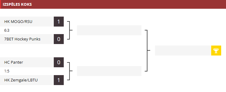 Otrajā pusfināla pārī pirmajā spēlē “Mogo/RSU” ar rezultātu 6:3 pārspēja Viļņas “7BET Hockey Punks”.