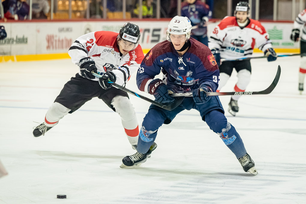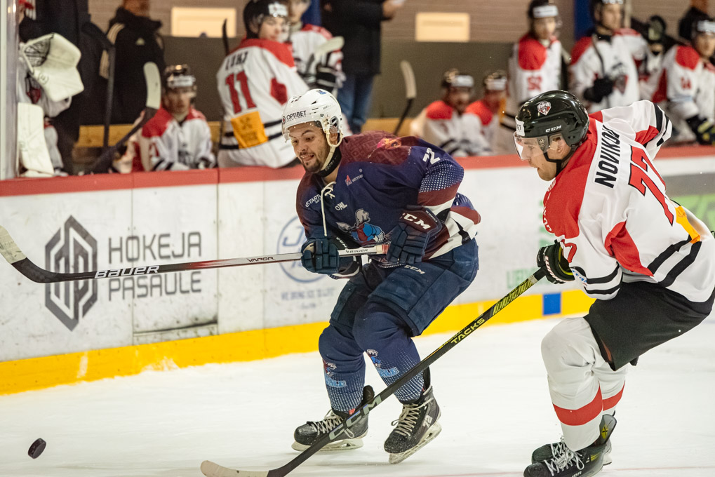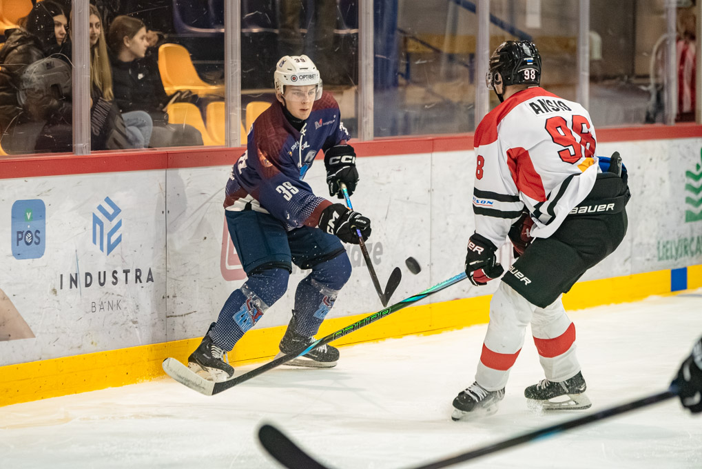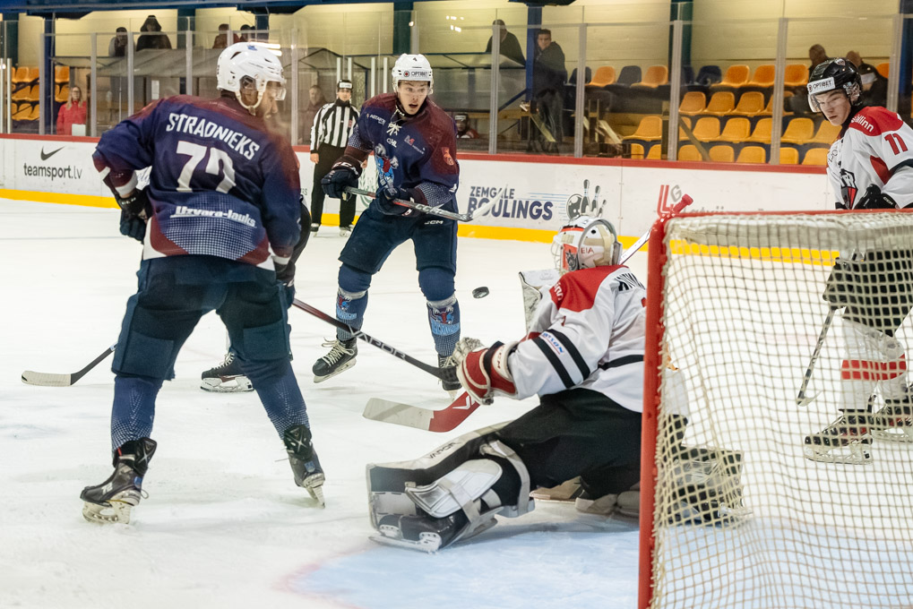 Savukārt “HC Panter” veidoja retus, bet bīstamus pretuzbrukumus. Pirmajā trešdaļā vārtsargs Aksels Ozols spēja ar tiem tikt galā, bet otrās trešdaļas noslēgumā Andre Linde spēja viņa pārspēt, izvirzot spēles vadībā – 1:2.