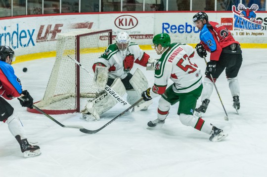 Otrā trešdaļā ilgu laiku komandas nevarēja tikt pie vārtiem, jo abas rādīja ātru un interesantu spēli. Četras minūtes līdz trešdaļas beigām, Ērikam Ozollapam individuālā uzbrukumā (pēc Rinalda Rosinska un Raivja Kurnigina piespēlēm) izdodas lauzt spēles gaitu, bet vēl pēc divām minūtēm rezultātu nostiprināja Kristaps Millers (pielabojot Eduarda Hugo Jansona metienu) – 4:1.